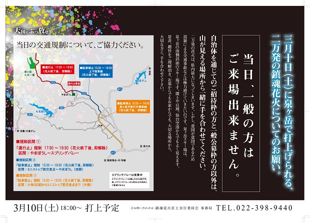 3月10日(土)に泉ヶ岳で花火が打ち上げられるそうです。